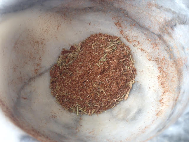 Ervas trituradas no pilão