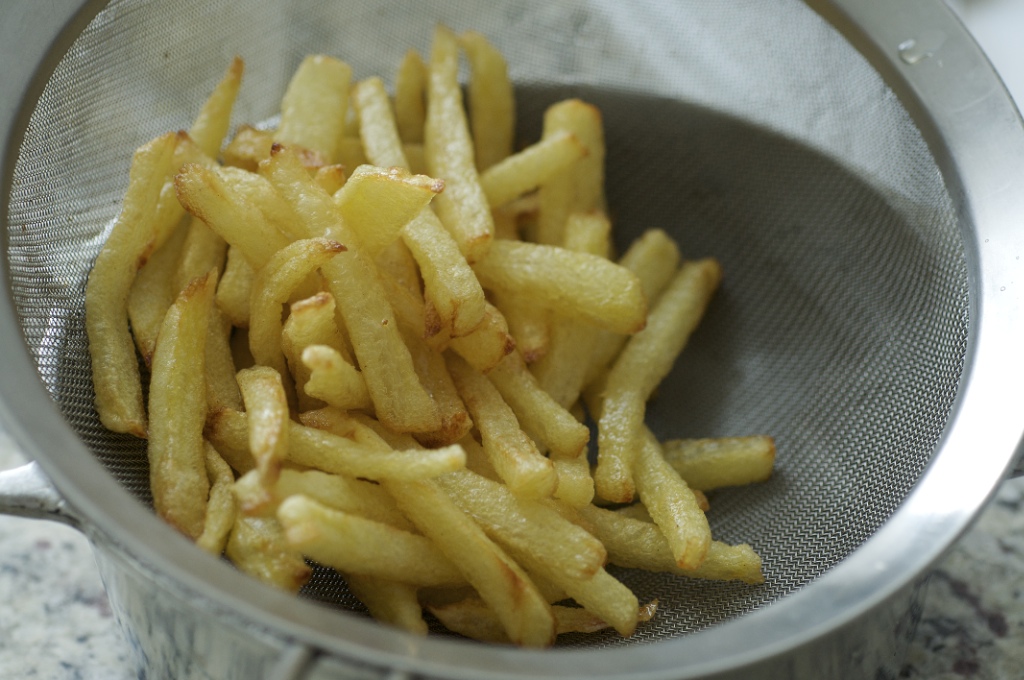 É importante escorrer na peneira assim que tirar do óleo.