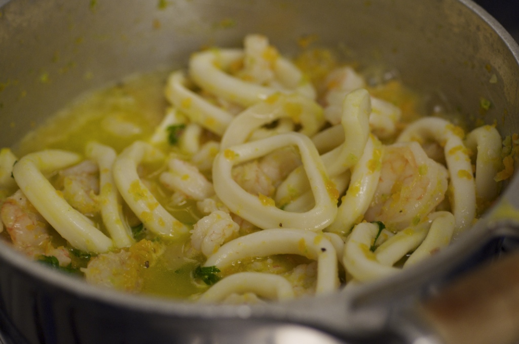 Frite a lula e o camarão