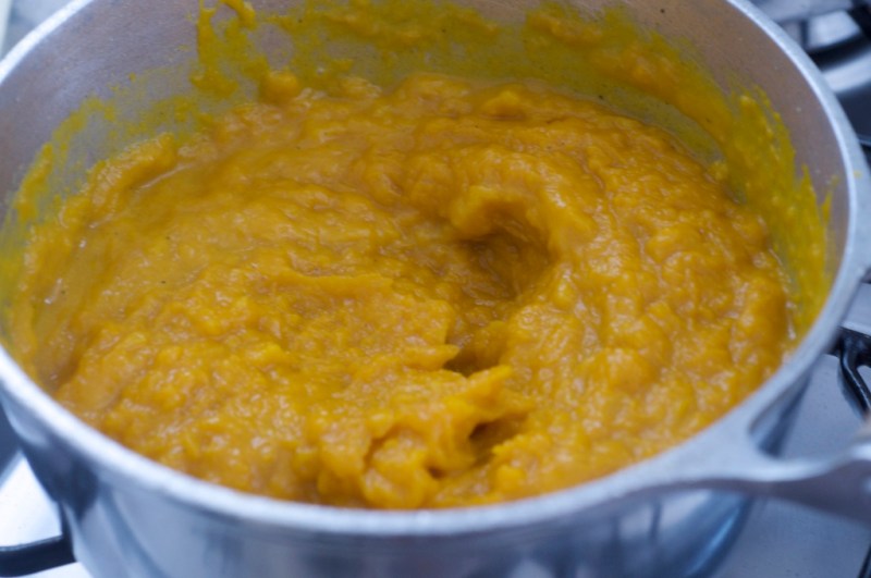 Em uma frigideira, frite os camarões em 2 colheres de sopa de azeite ou 1 colher de manteiga. Assim que estiverem vermelhos, esquente à parte o whisky, colocado o líquido dentro de uma concha, diretamente sobre a chama. Vire a concha um pouquinho para que o whisky pegue fogo e verta-o imediatamente sobre os camarões. O processo de flambagem é delicado, tenha cuidado. Assim que o fogo apagar sozinho, retire os camarões e reserve-os.