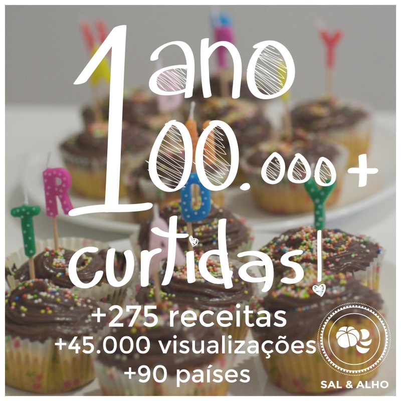 Além disso, comemoramos também que nossa fan page no Facebook já tem mais de 100 mil seguidores! Isto é mesmo incrível para o nosso primeiro ano e não poderíamos estar mais felizes! Além de influenciar muitas pessoas a se aventurarem na cozinha, o blog também já tem um filhinho que é o nosso curso de culinária para iniciantes que já seguem para o curso intermediário no próximo ano.