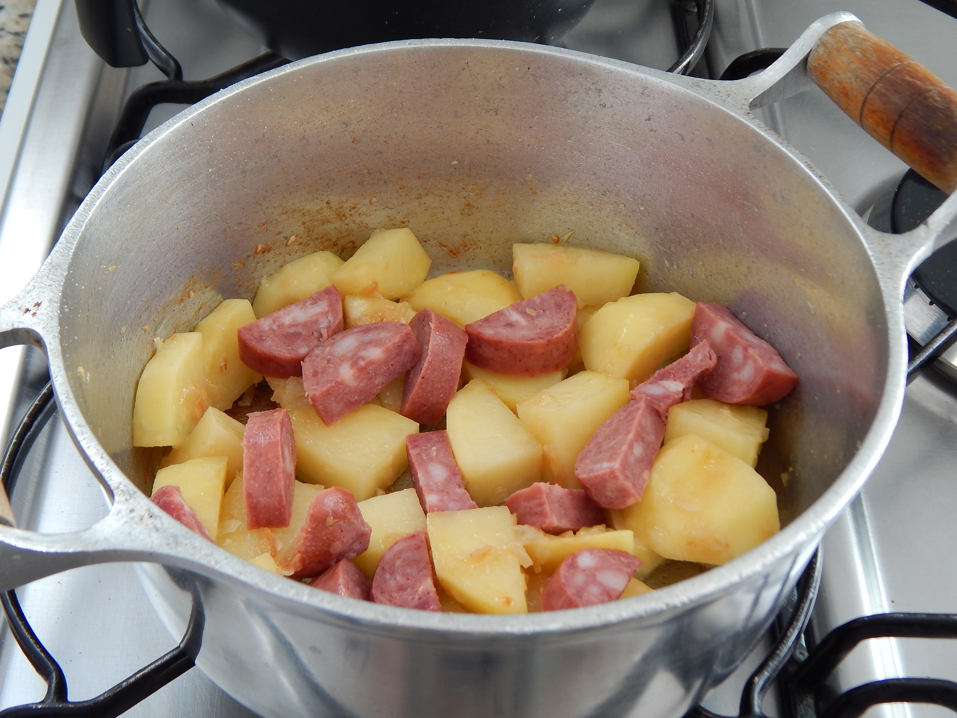 Frite a linguiça e a batata
