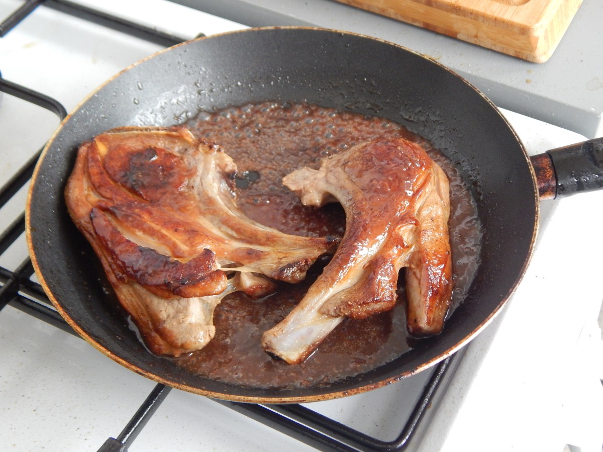 Costeletas já grelhadas reaquecidas no molho
