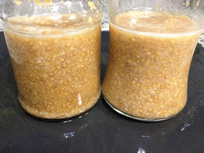 Passo 2: abra o pote e com o socador de um pilão esmague as sementes no vinagre tanto quanto conseguir (as maiores são mais fáceis de socar que as pequenas). Junte a mostarda em pó aos poucos, misturando bem. Junte a segunda quantidade de vinagre, o mel e o sal, misture bem, tampe e conserve o molho na geladeira. Pode ser usado imediatamente.