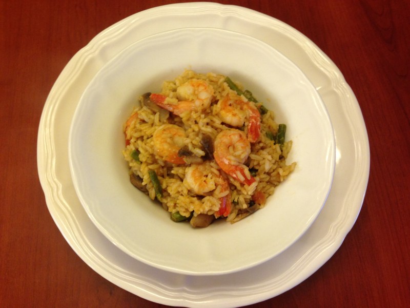 Risotto com camarões, cogumelos e aspargos