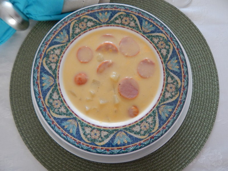 Quando se trata de comida, sempre estou de orelha em pé escutando comentários de outras pessoas. Uma noite dessas, em um restaurante típico mineiro que serve caldos, na ausência de novidades (15 tipos e de todos já tem receita aqui no blog), perguntei às amigas se alguém conhecia algo diferente. Pois uma delas comentou que havia tomado um caldo de batatas com cheddar, receita americana. É claro que tratei de inventar algo semelhante na primeira oportunidade. Fiz à nossa moda mineira, ou seja, refogando os legumes, e ficou perfeito! Servi às amigas e todas adoraram!
