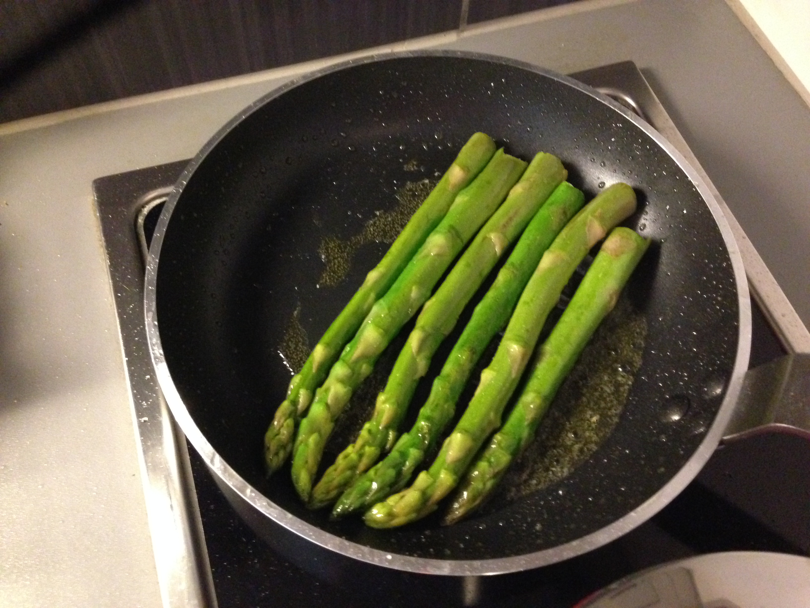 Passe os aspargos na mesma frigideira