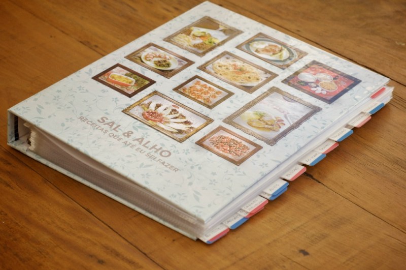 Álbum de Receitas Tradicional (como o da foto): compre um arquivo fichário. Baixe, em PDF, as receitas que mais gostar e imprima-as. Organize-as por assunto, como nós fazemos no nosso álbum que você vê na foto acima. Como já são mais de seiscentas receitas, já temos quatro álbuns!