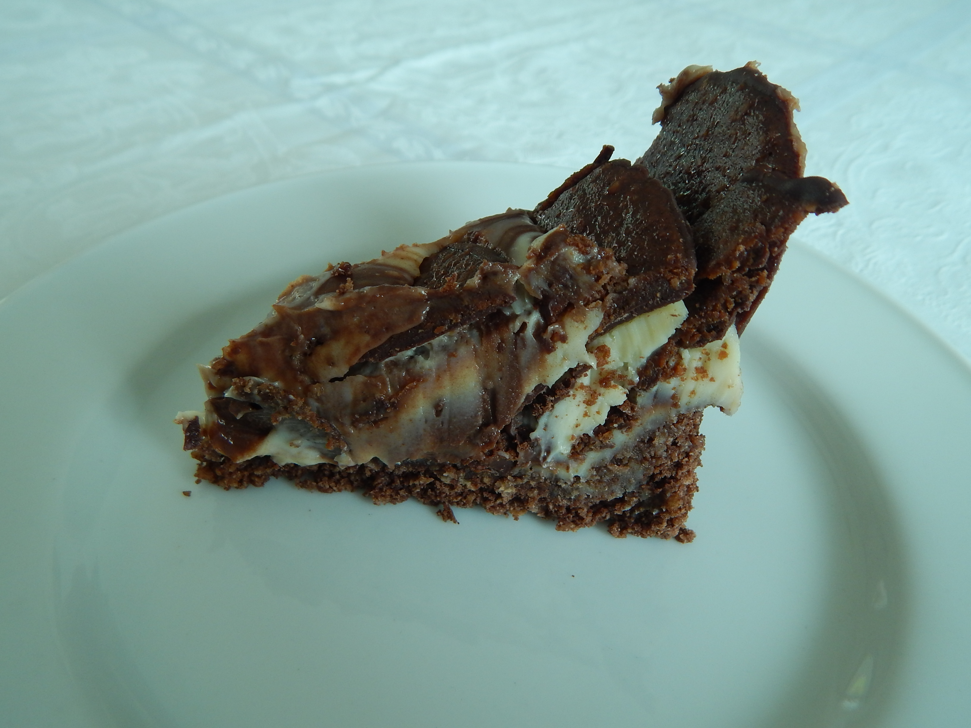 5) Se for apresentar a sobremesa na tigela grande, coloque por cima, bem devagar, o creme amarelo – que irá afundar em parte, formando um creme mesclado.