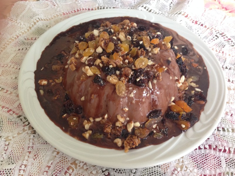 7) Se quiser seguir a receita original, coloque as ameixas secas para ferver com um pouco de água a fim de soltarem o caroço. Vai formar uma calda, desligue antes que engrosse. Tire o caroço e parta cada ameixa em duas. Depois que o creme amarelo também gelar, já na hora próxima de servir, coloque uma metade de ameixa no meio de cada tacinha e regue com uma colherinha de café de calda.