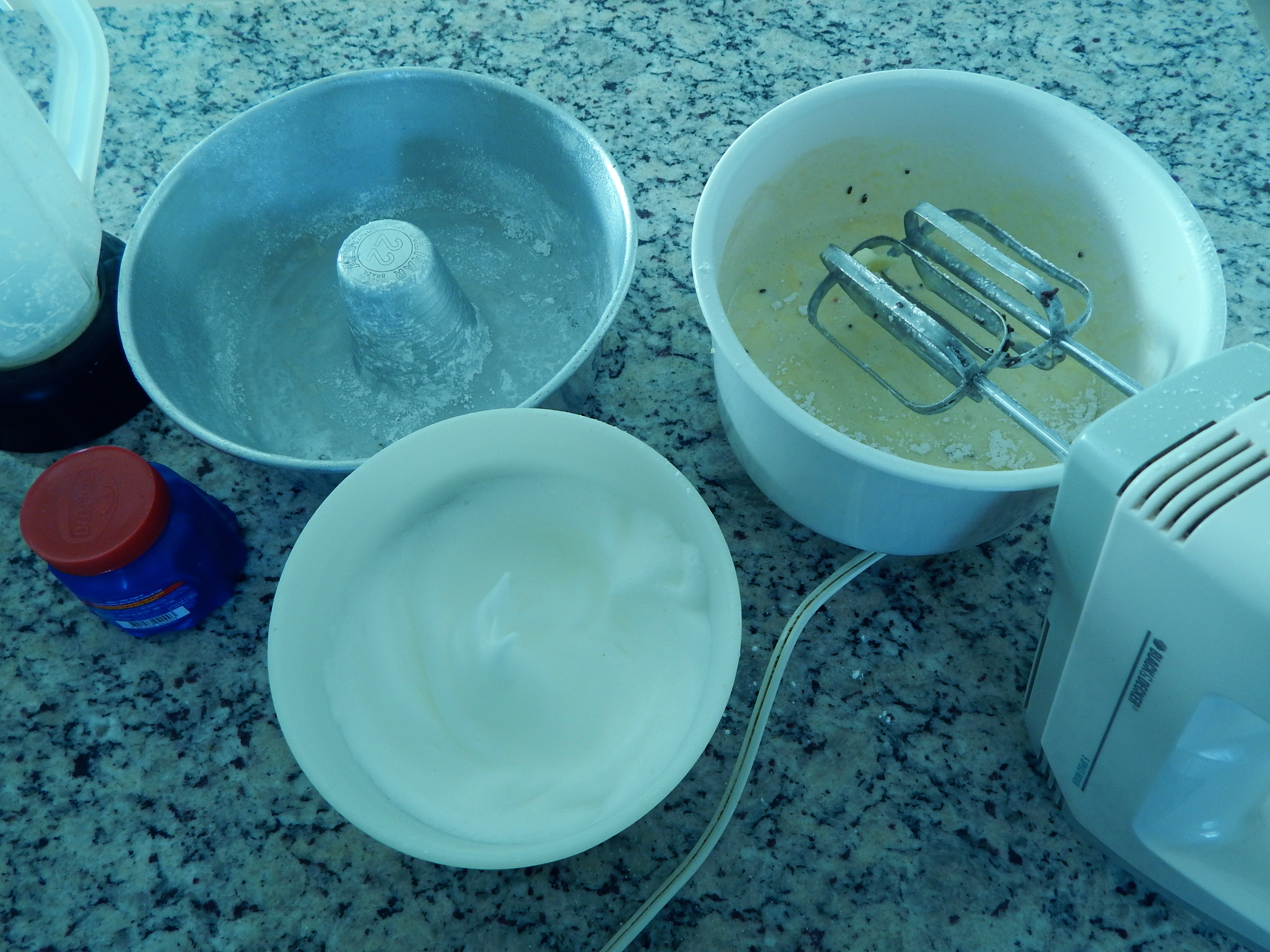 massa batida,claras em neve e assadeira untada