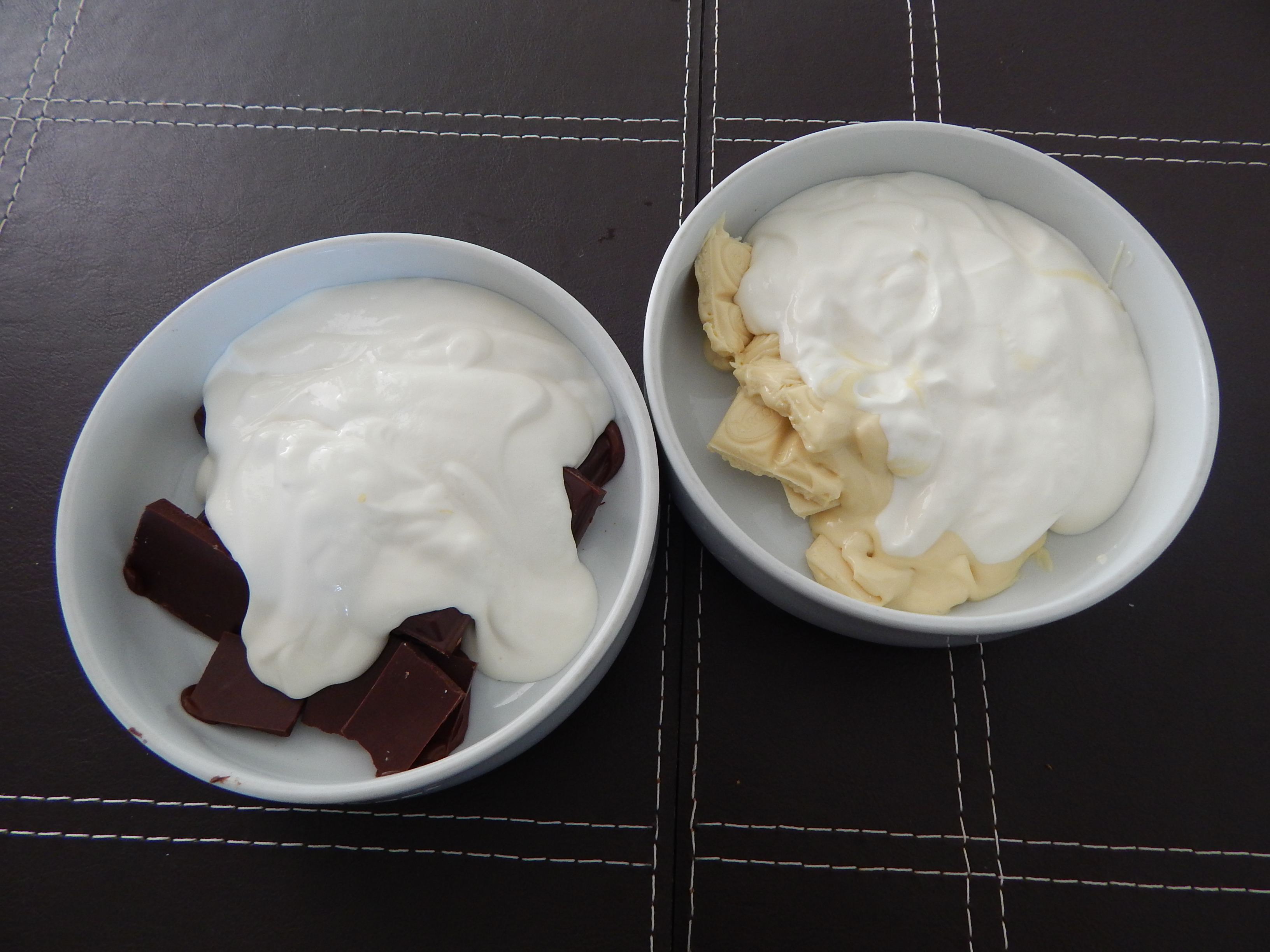 Faça os dois cremes de chocolate separado