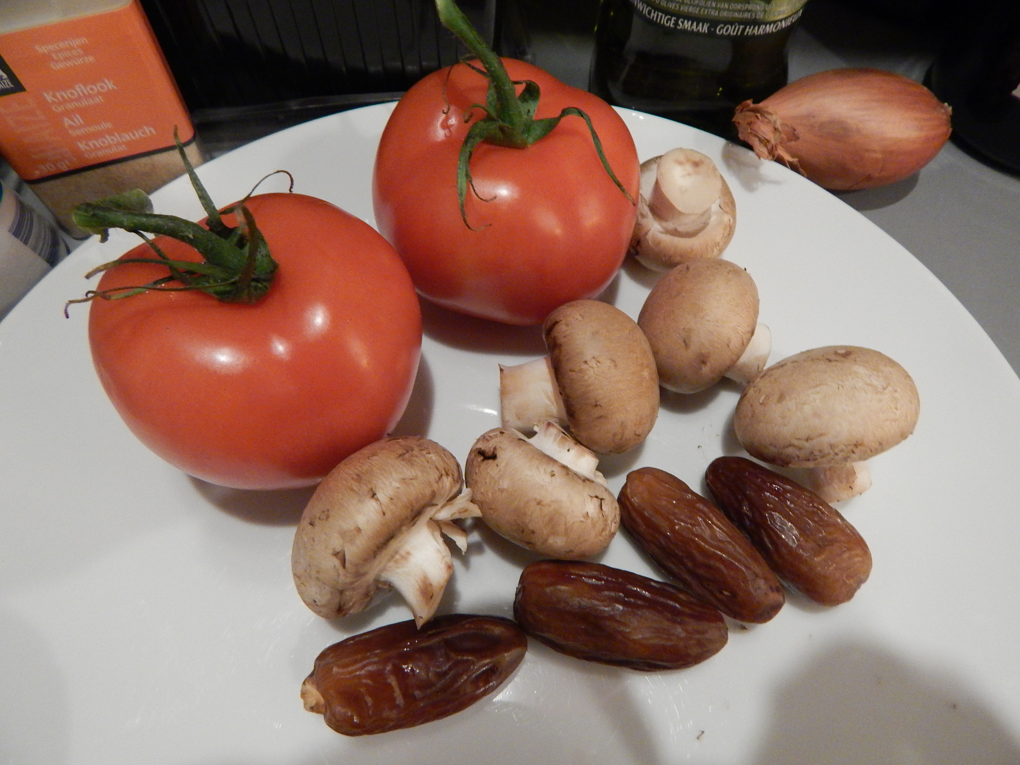 Tomates, cogumelos e tâmaras