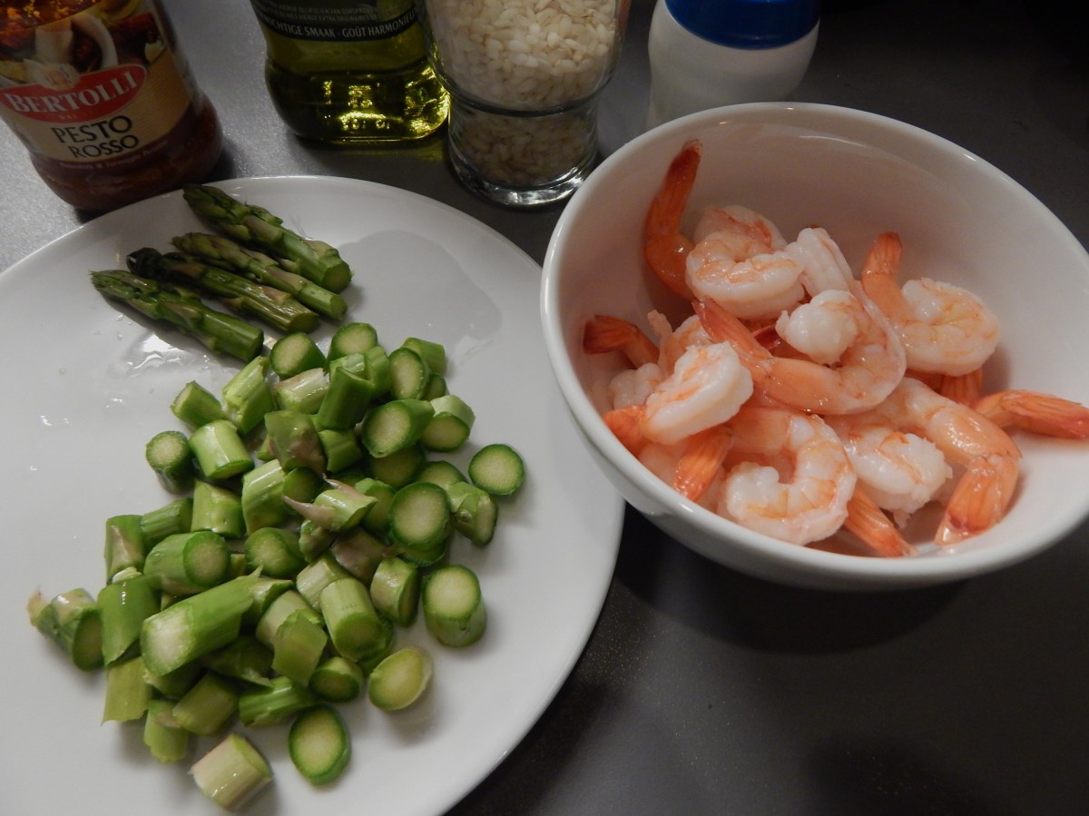 Corte os aspargos e tempere o camarão