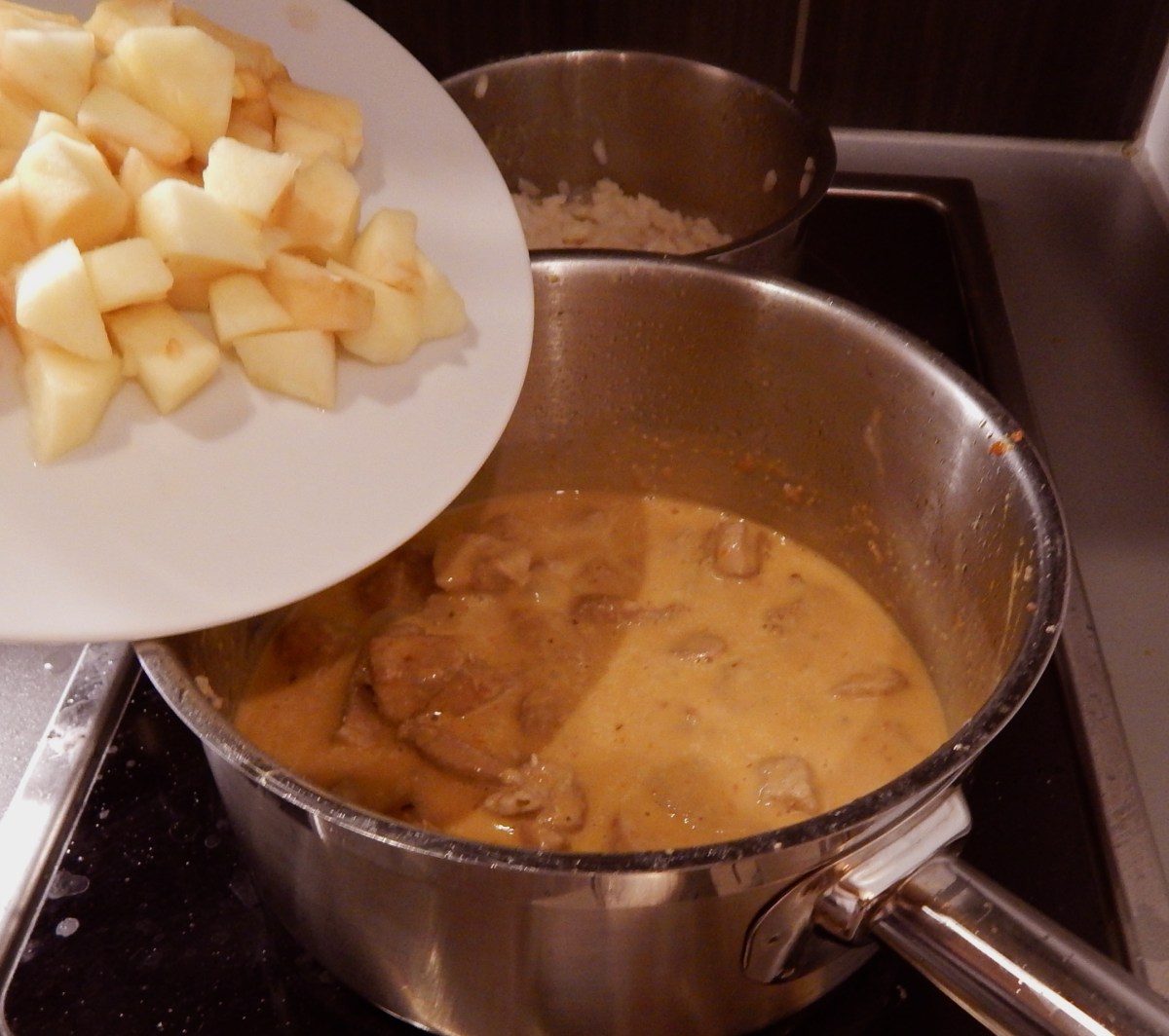 Misture creme de leite e maçãs