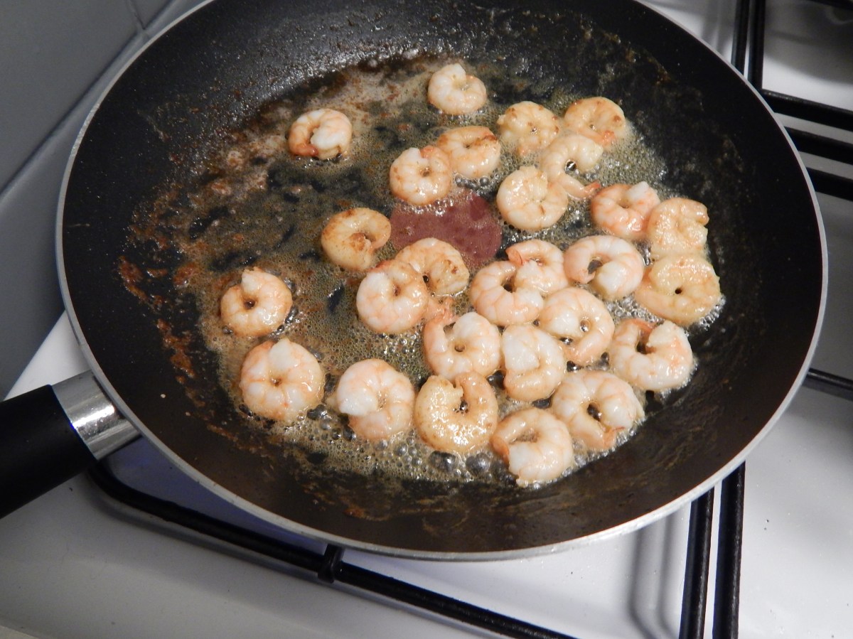 Frite os camarões