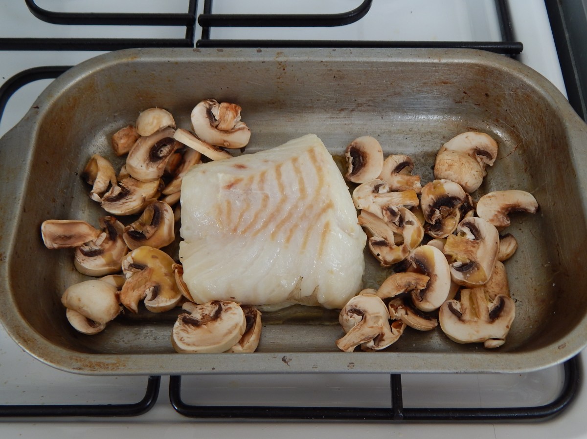 Asse o peixe e os cogumelos