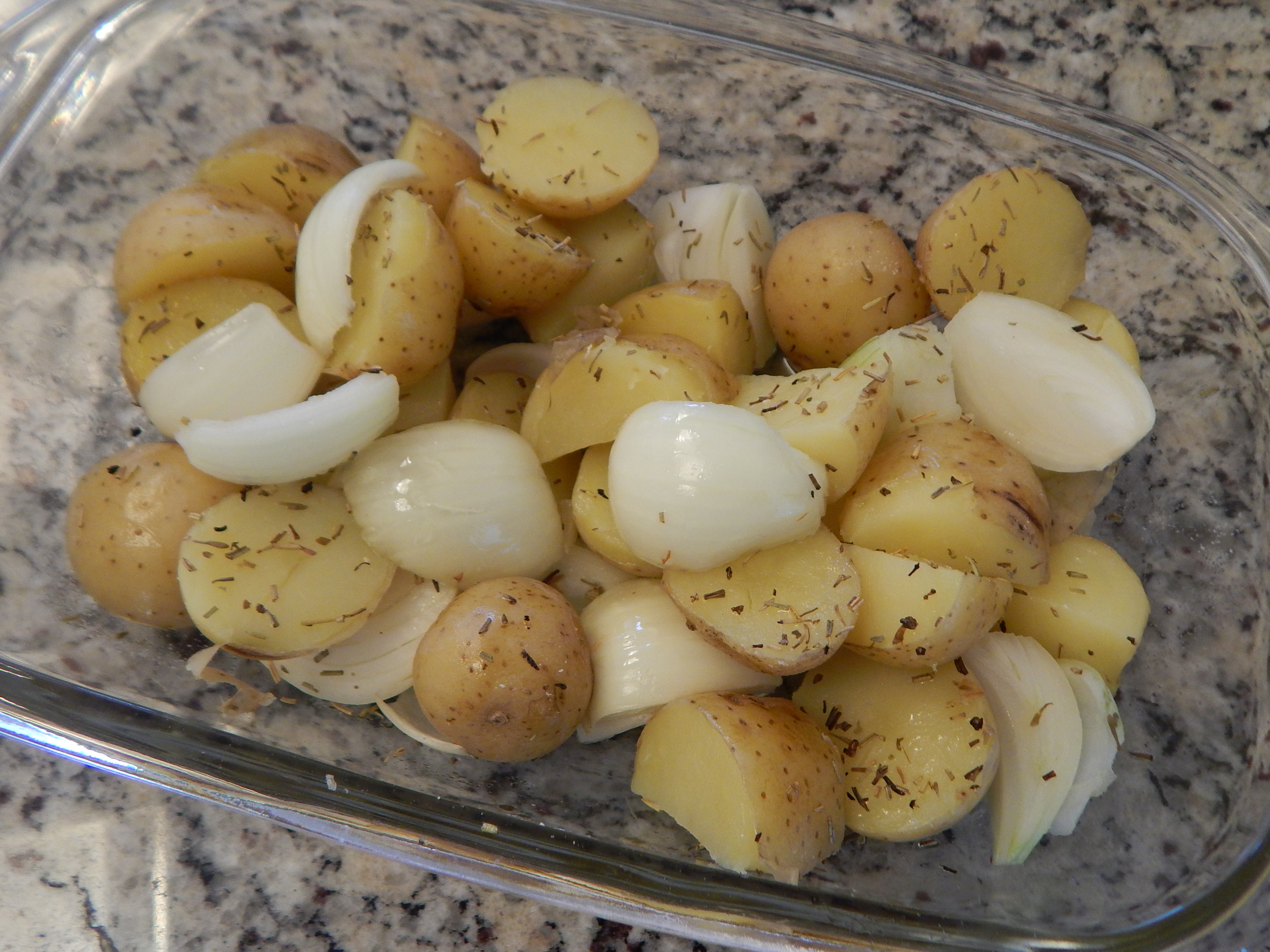 Batatas e cebolas assadas