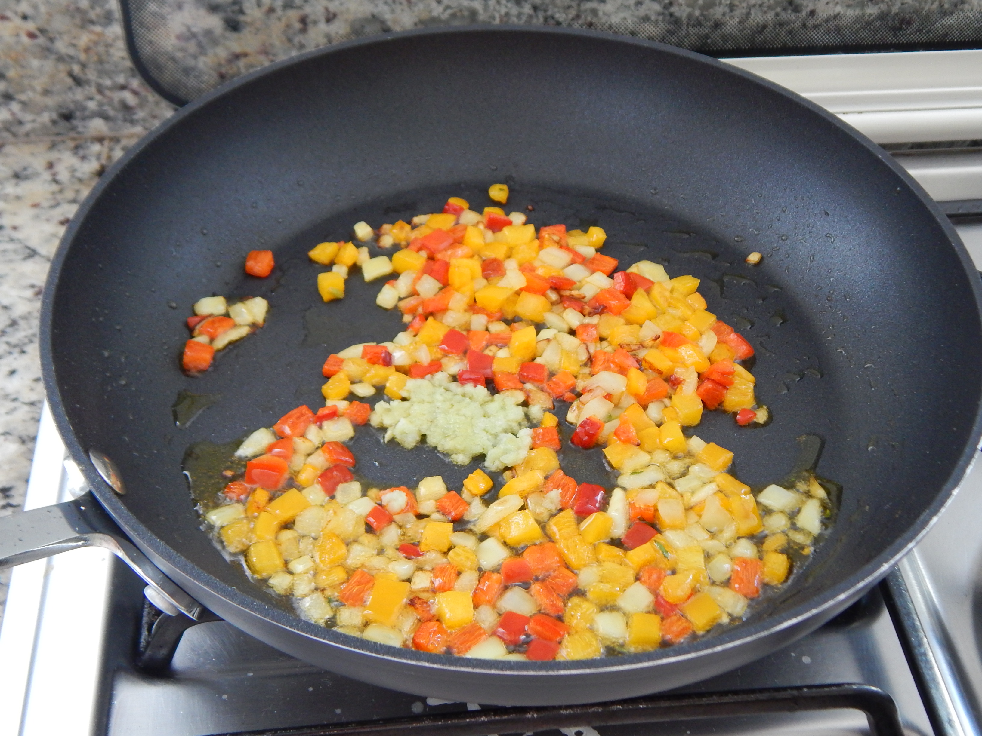 Doure a cebola e os pimentões