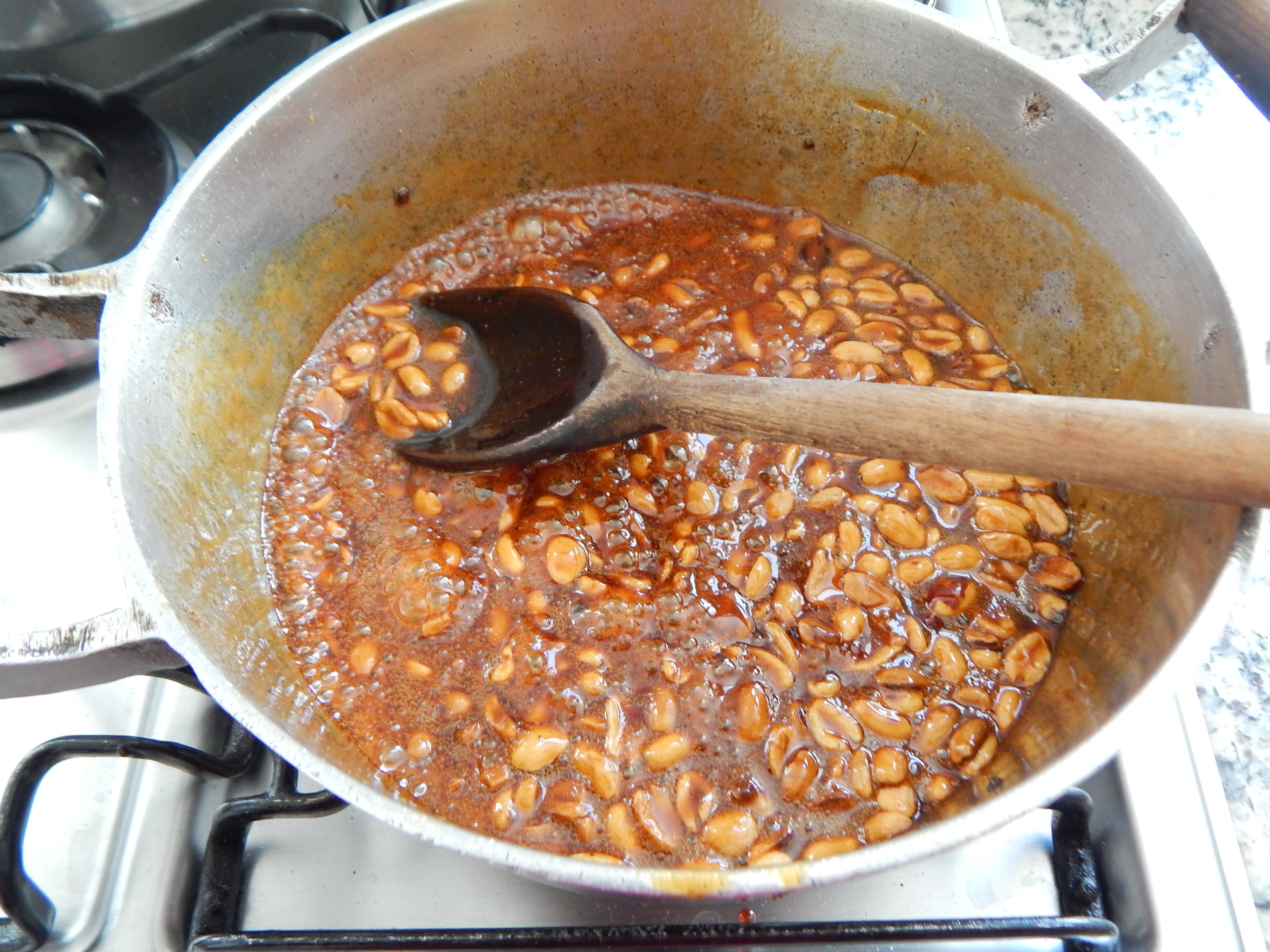 Misture o amendoim à calda de rapadura