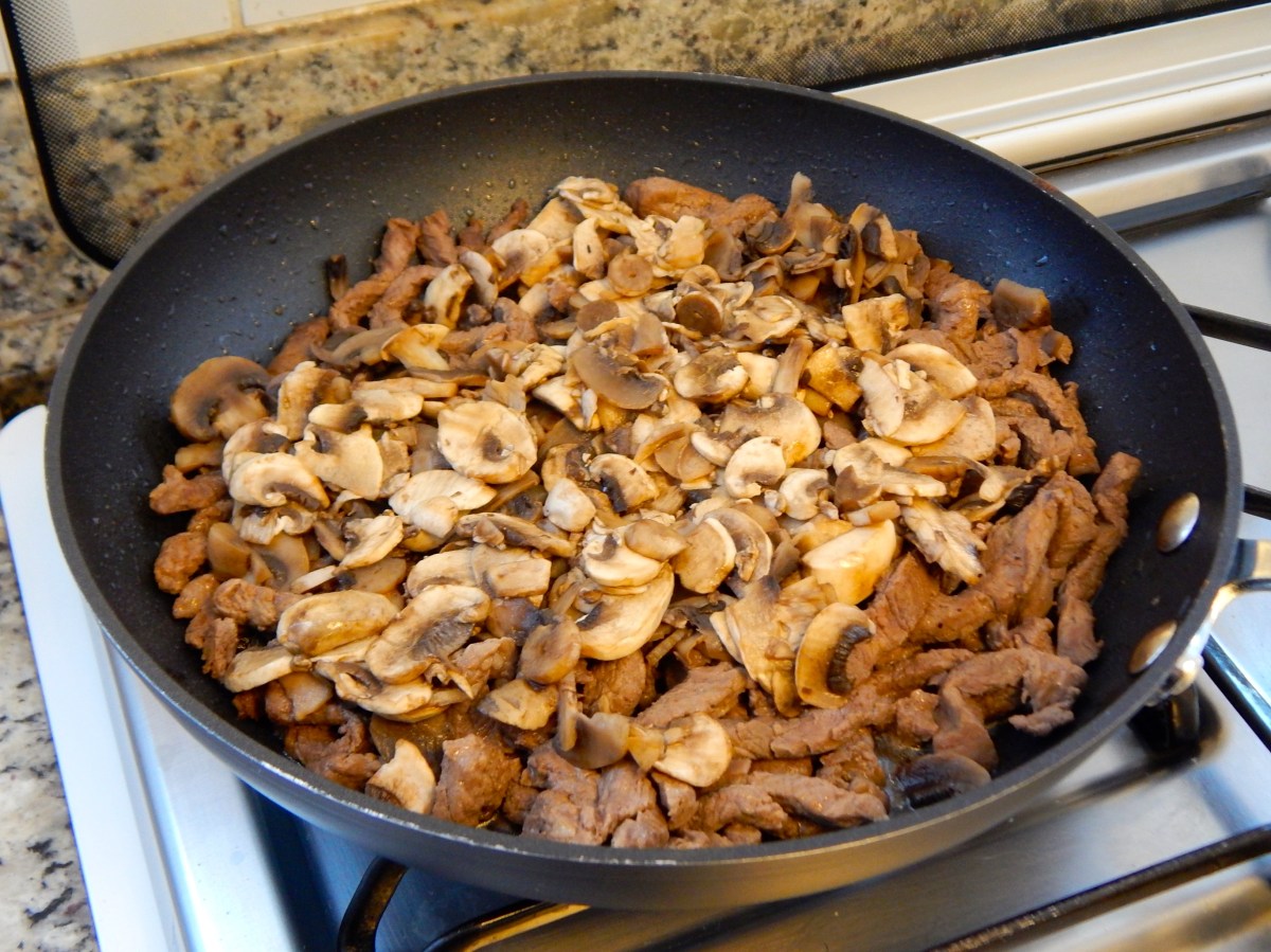 volte com o caldo e junte os cogumelos