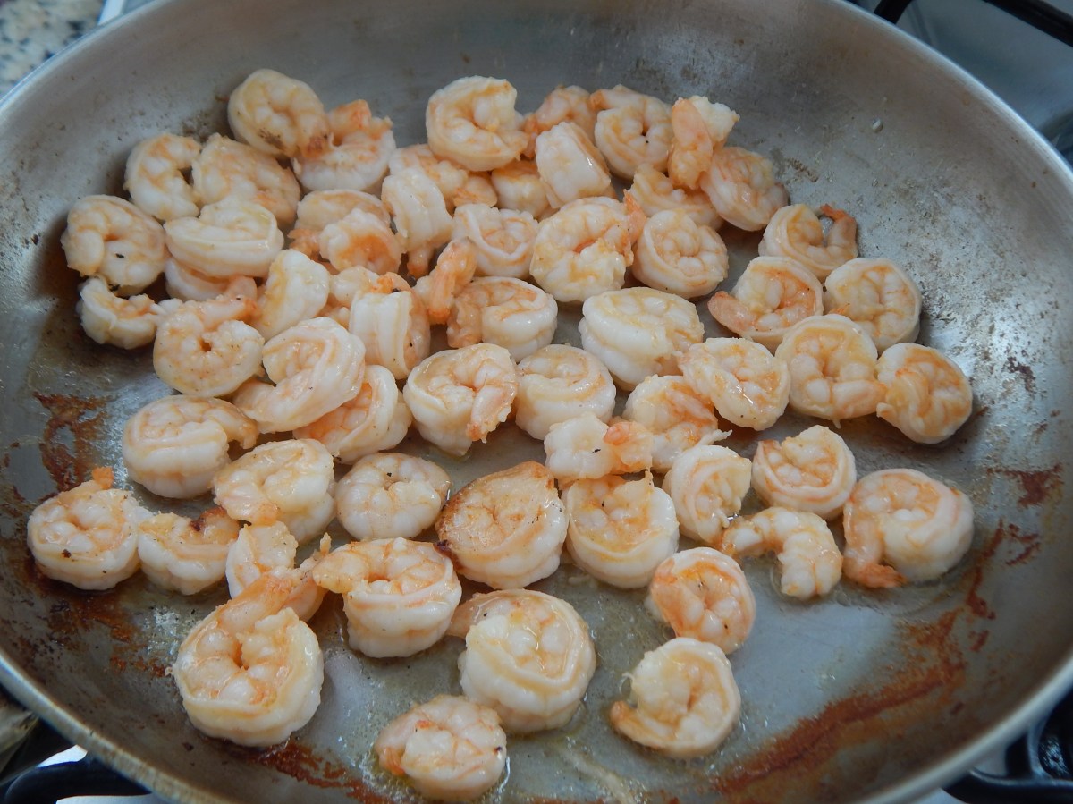 Frite os camarões