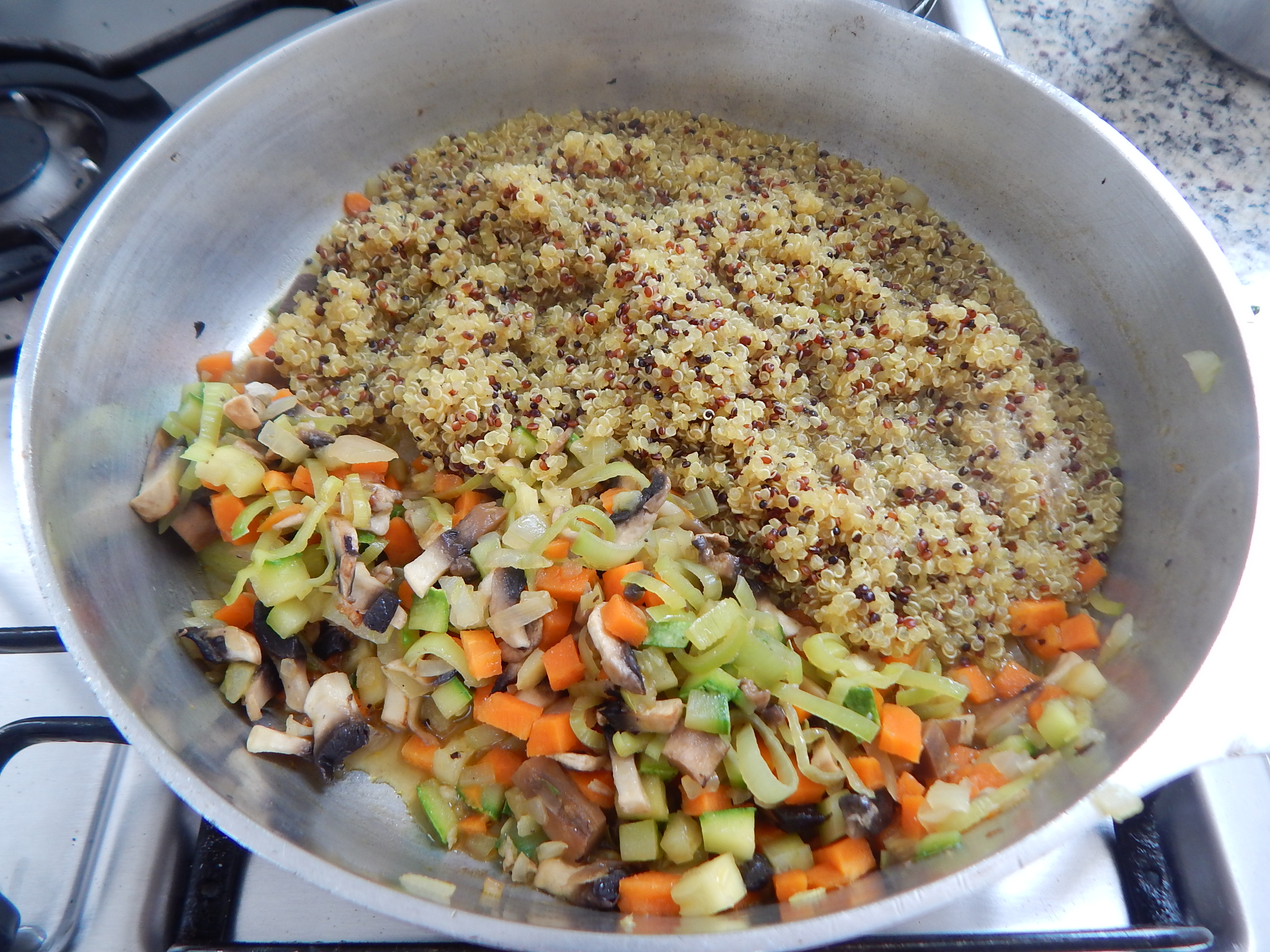 Misture a quinoa cozida com os legumes salteados