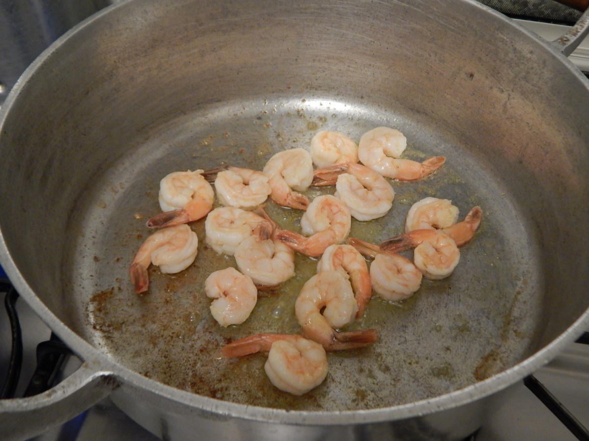 Frite os camarões