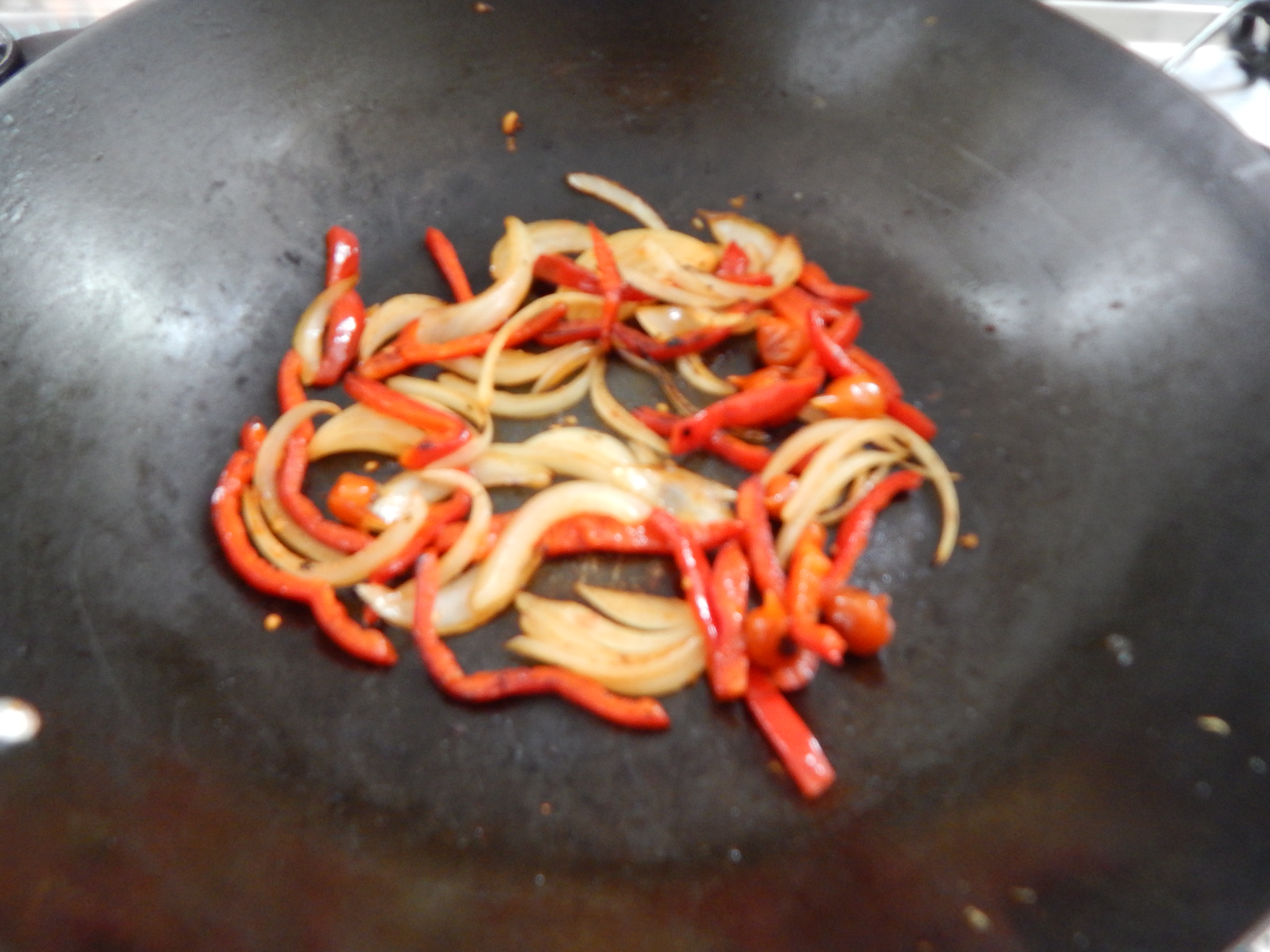 Salteie a cebola e o pimentão