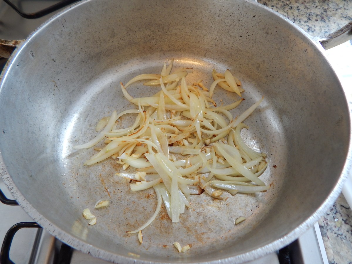 Frite o alho e a cebola