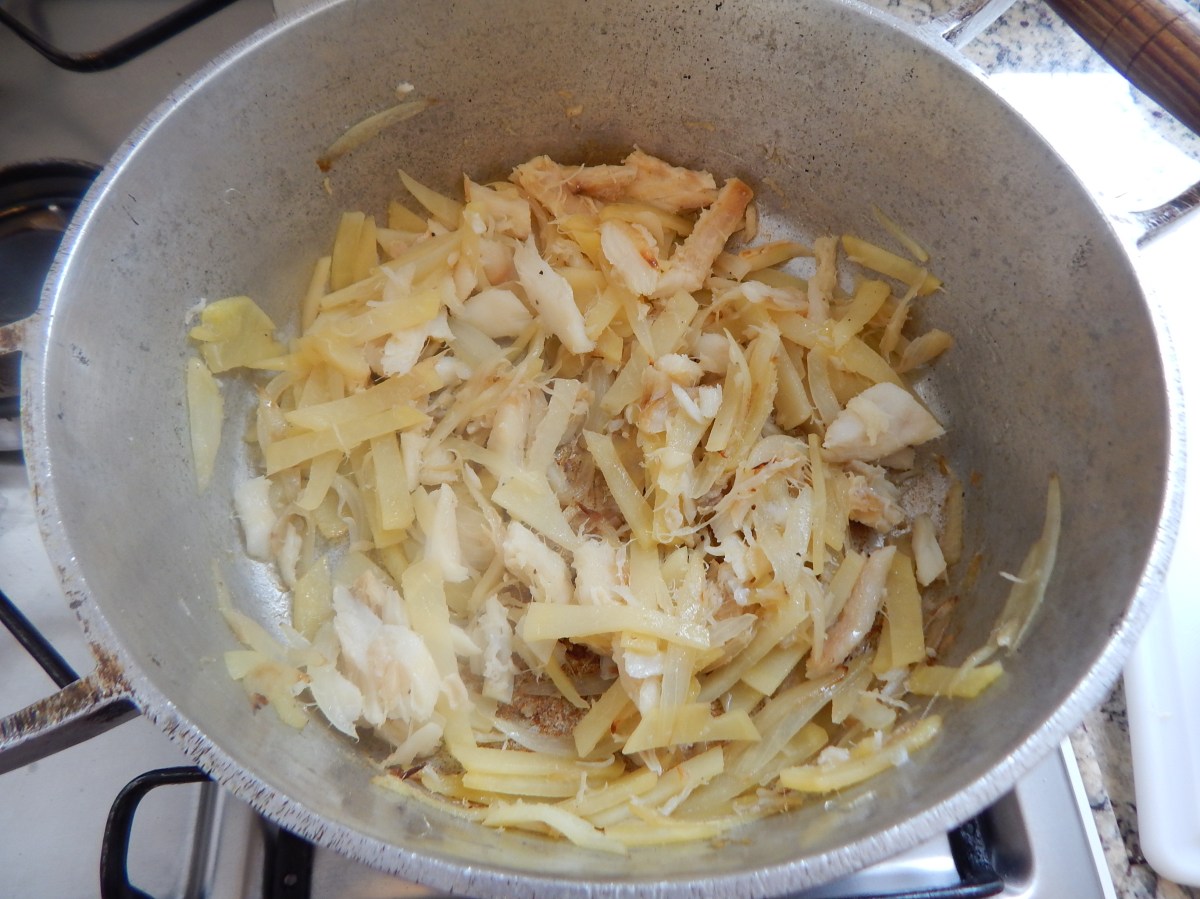 Junte a batata e o bacalhau