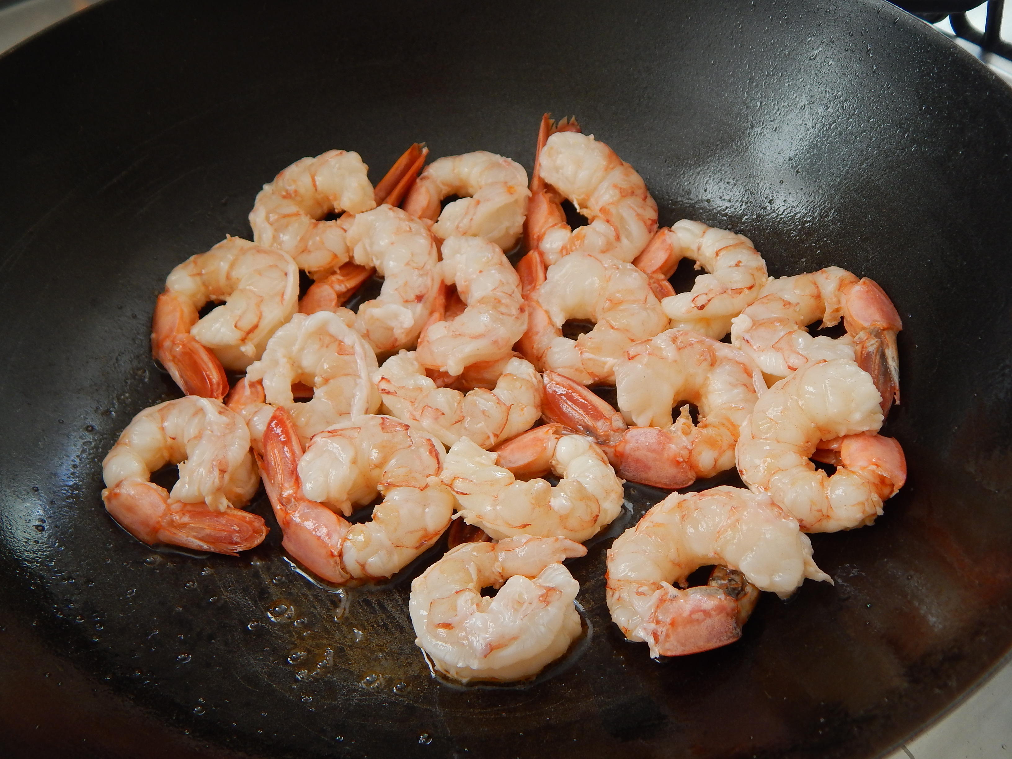 Frite os camarões