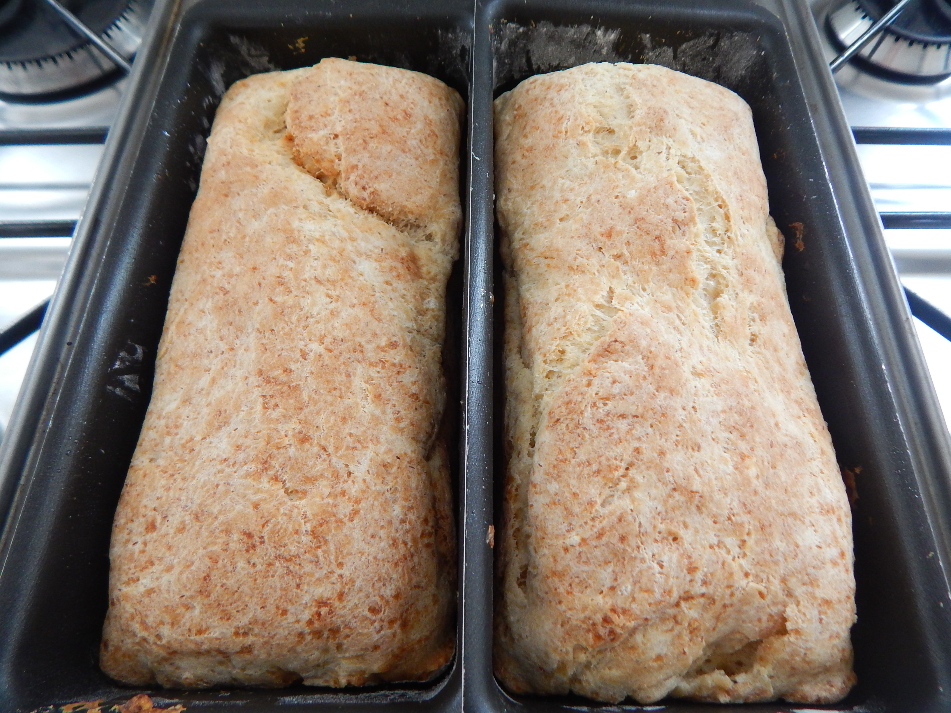 Pão assado em 2 formas pequenas