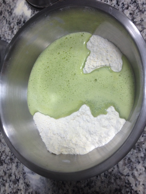 Misture a pasta de espinafre à farinha