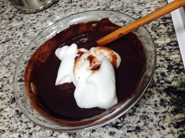 juntando chocolate e claras em neve