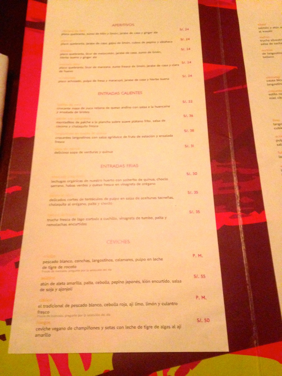 Aperitivos, entradas, ceviches