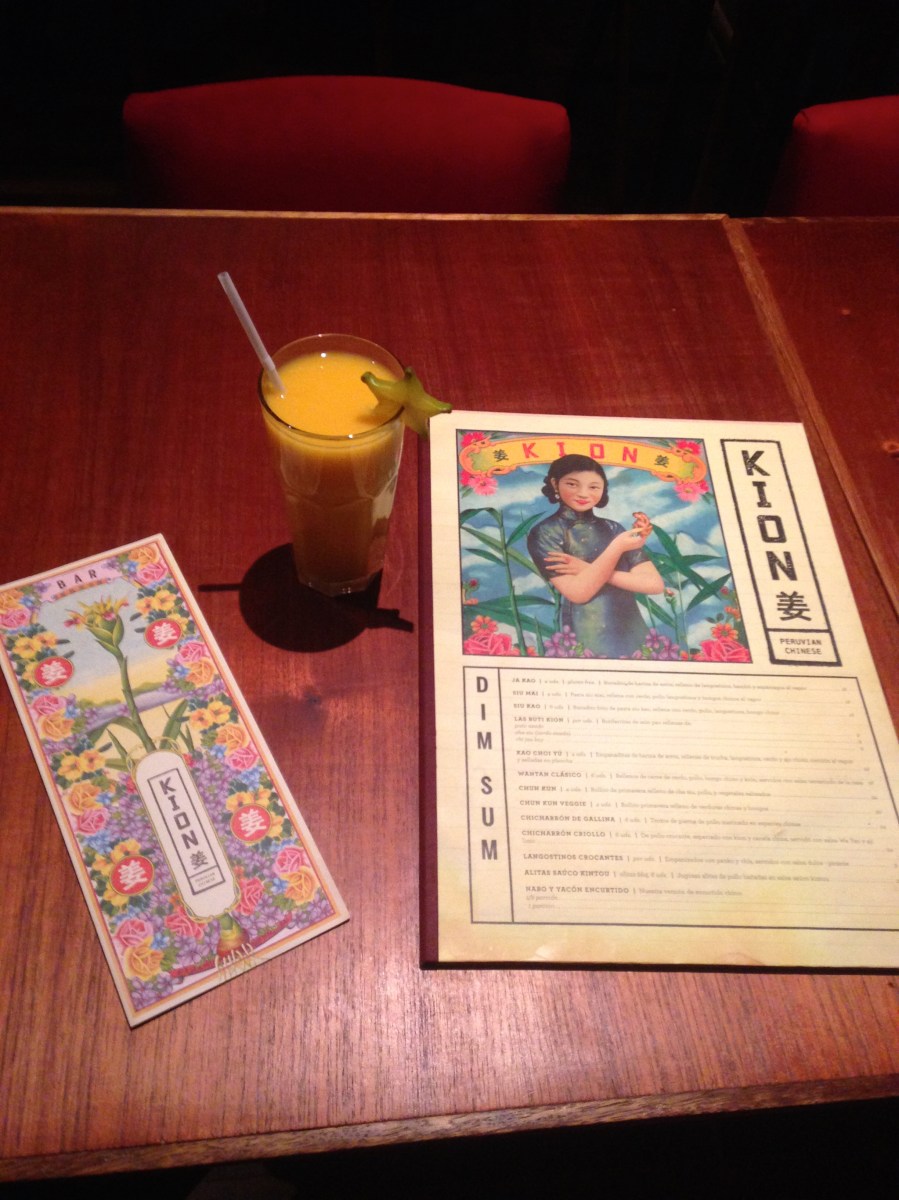 Cardápio e Pisco com maracujá e pêssego