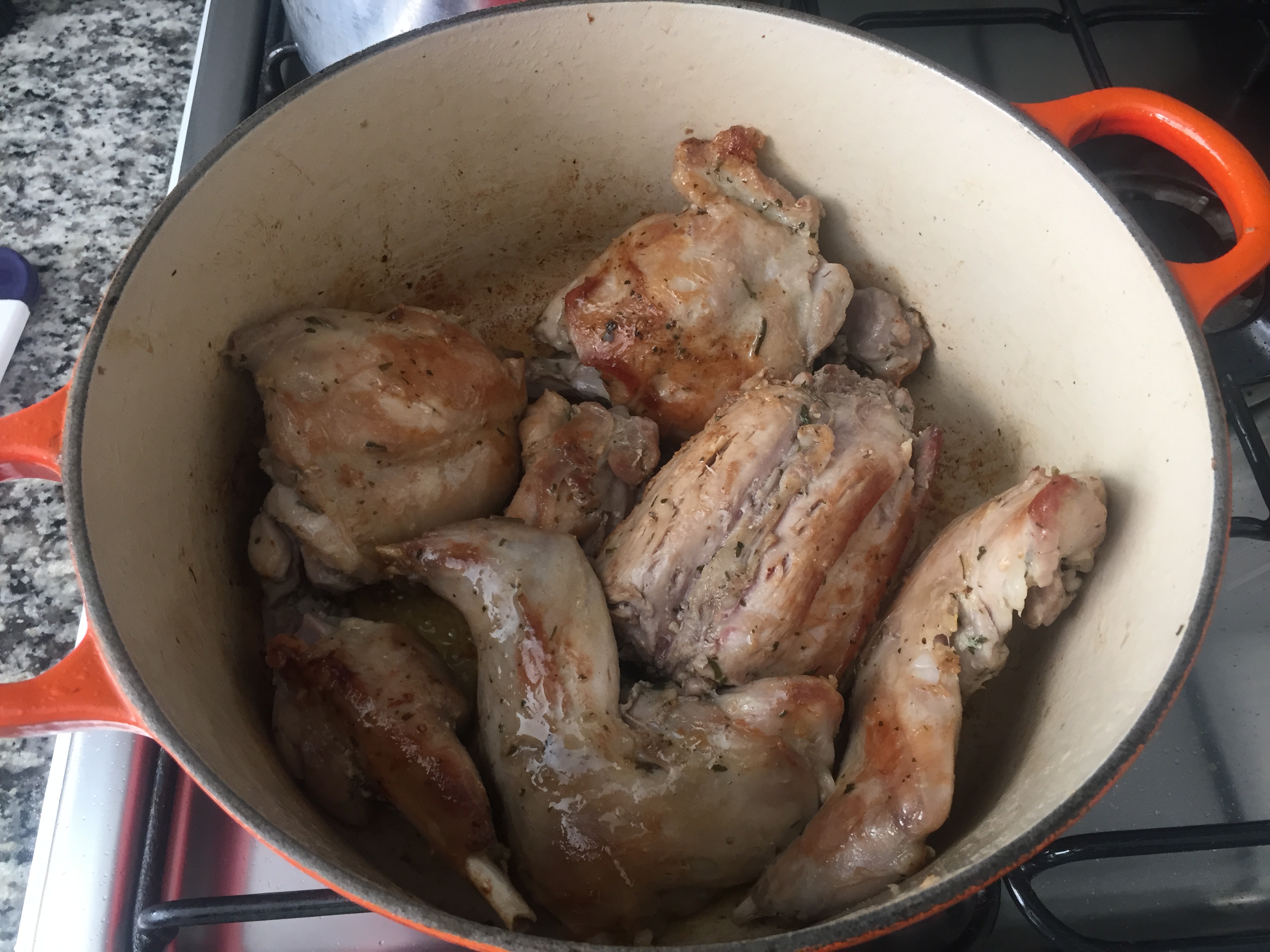 Doure os pedaços de coelho
