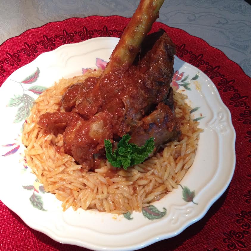 Stinco de cordeiro à moda turca