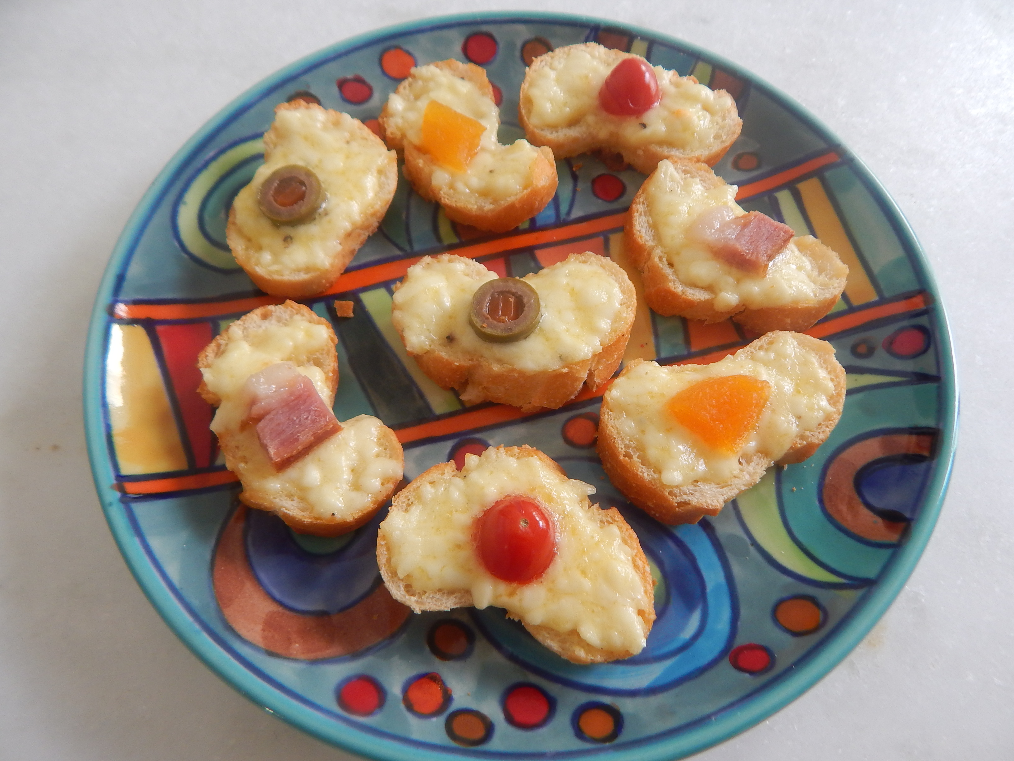 Canapé de beringela com pimentões / Canapé de beringela com azeitonas