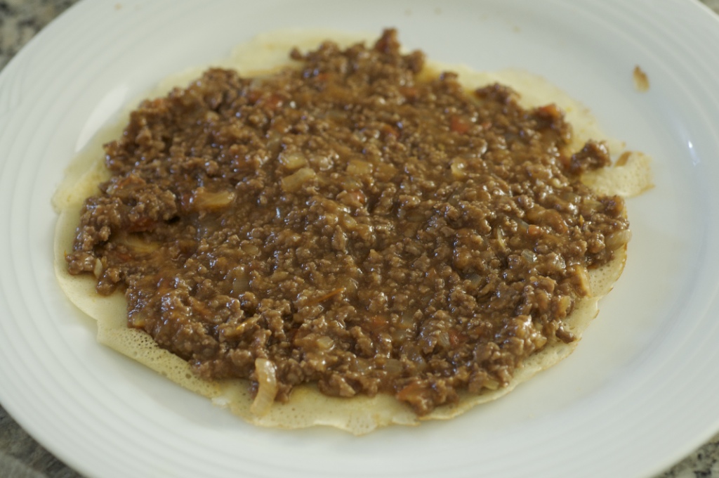 coloque o recheio sobre a panqueca