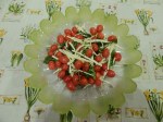 presunto cru, tomate, romãs e folhas