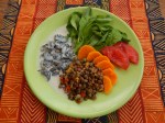 Grão-de-bico, pepino, tomate, cebola, coalhada
