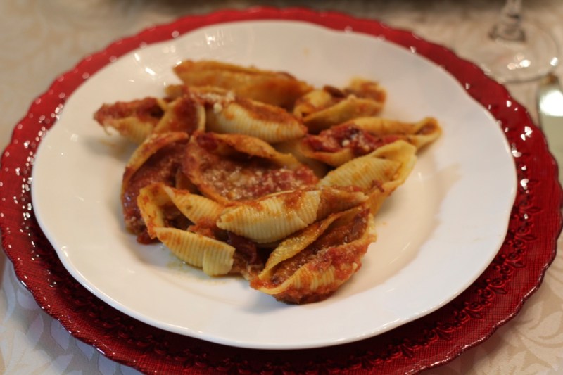 No inverno, servir uma pasta fumegante é sempre uma ótima opção de prato único para o jantar. Para nós brasileiros que gostamos de acompanhar carnes com pastas no mesmo prato ( que nos perdoem os italianos por esta deliciosa ousadia) também é uma boa pedida para qualquer refeição. A receita que apresentamos hoje é feita usando um tipo de pasta em forma de concha. Fica um prato muito bem apresentado.